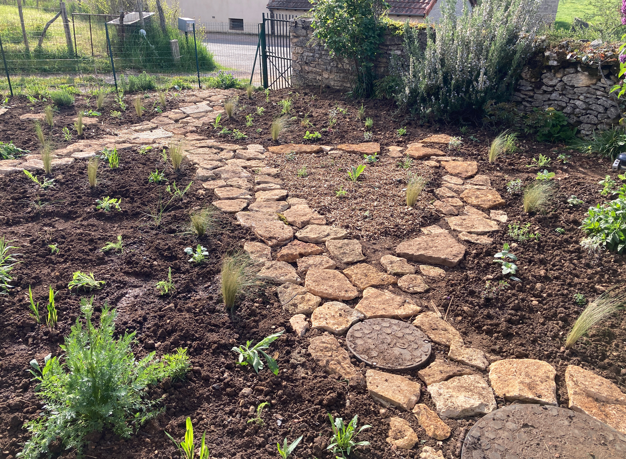 Nous avons réalisé le chantier de plantations au printemps 2024 auquel nous avons convié la propriétaire désireuse d’apprendre à nos côtés. Nous réalisons des séances de « compagnonnage » régulières au cours desquelles nous accompagnons notre cliente dans l’entretien du jardin.