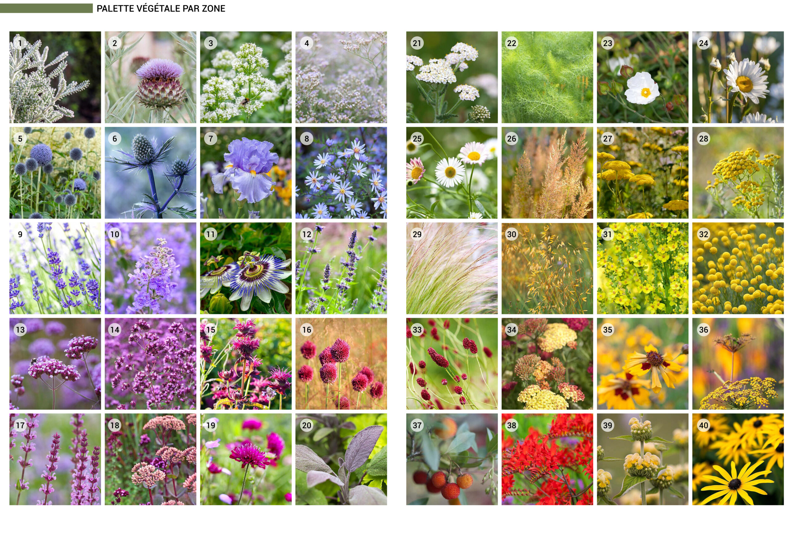 Nous avons effectué une fine sélection de plantes vivaces répondant aux exigences de sol et de climat, et présentant également des caractéristiques esthétiques variées et originales. La gamme de plantes proposée offre un large éventail de textures, de feuillages et d’inflorescences.