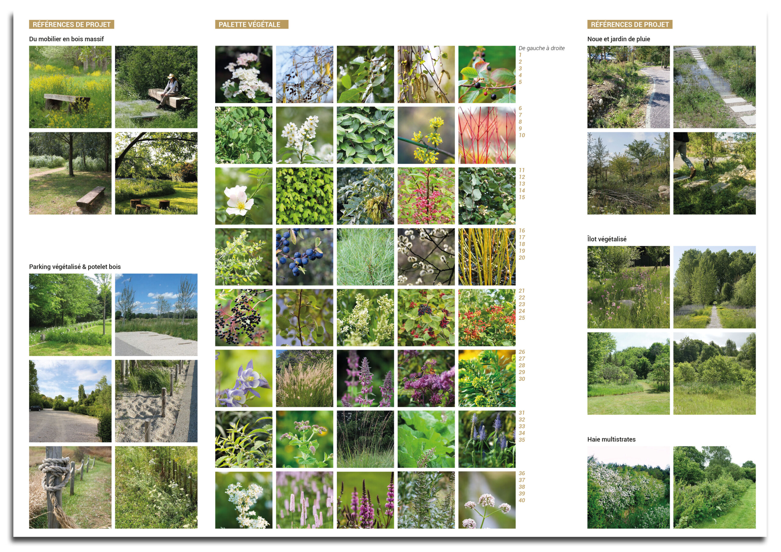 Le projet privilégie des aménagements simples et durables : matériaux naturels, végétation rustique, revêtements perméables et dispositifs de gestion douce des eaux pluviales (noue paysagère). L’ensemble vise une intégration paysagère sobre, une gestion facilitée et le respect des ambiances naturelles du site.
