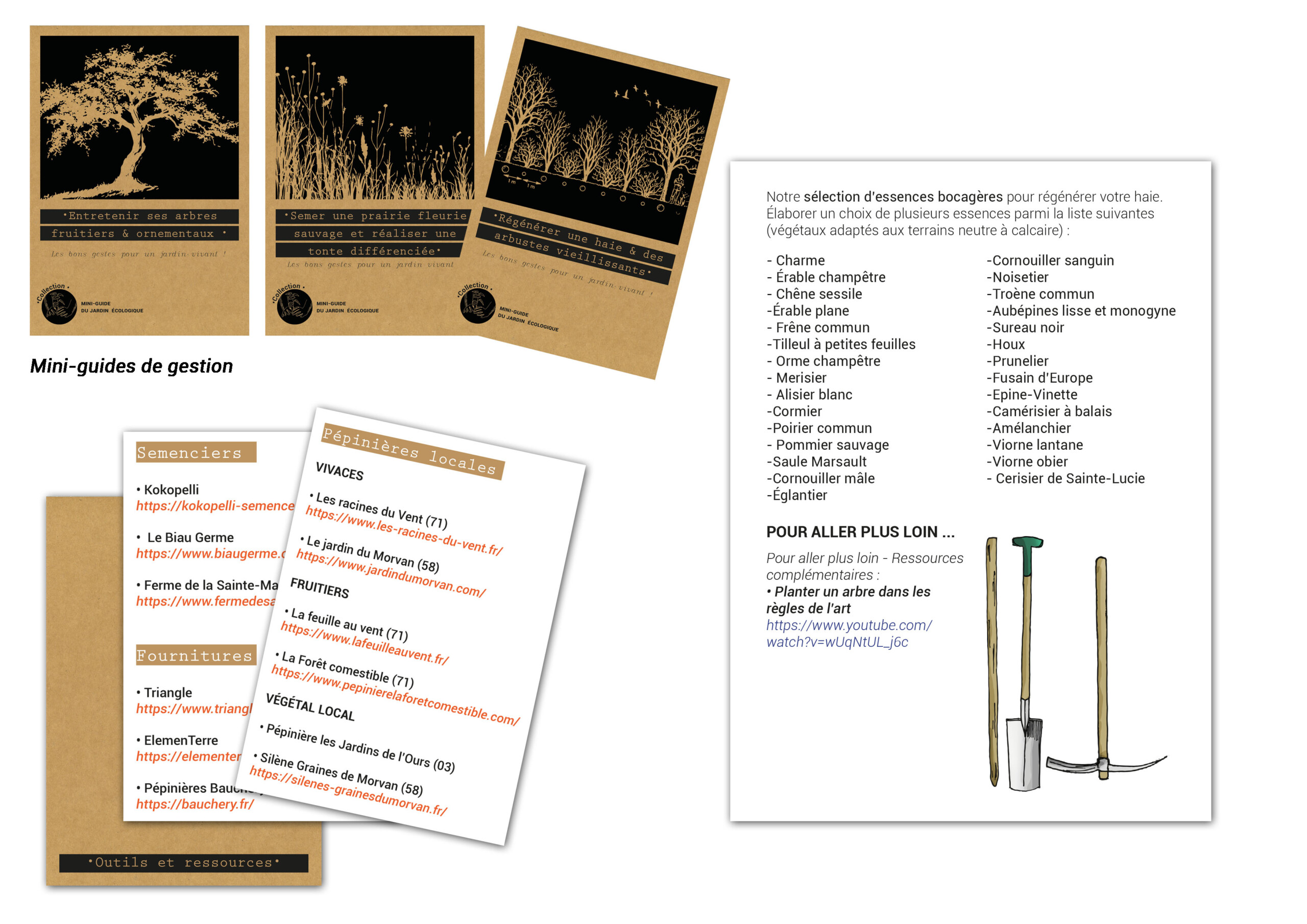 Plusieurs secteurs clés ont été identifiés : la terrasse estivale, la terrasse nord et la zone dédiée au potager. Trois dossiers de conseil-actions ont ainsi été élaborés, accompagnés de mini-guides pratiques.